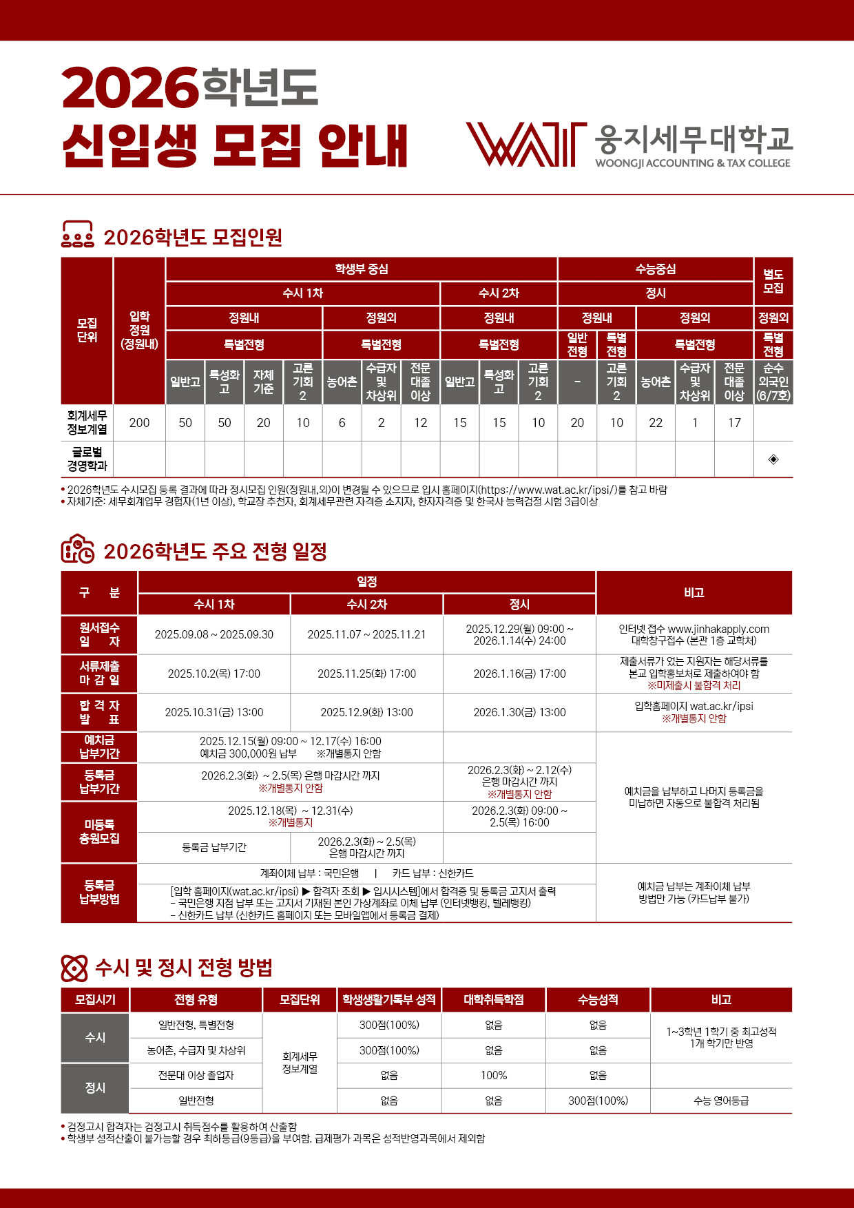 웅지세무대학교 글로벌경영학과(순수 외국인 전담 학과) 신입생 모집안내