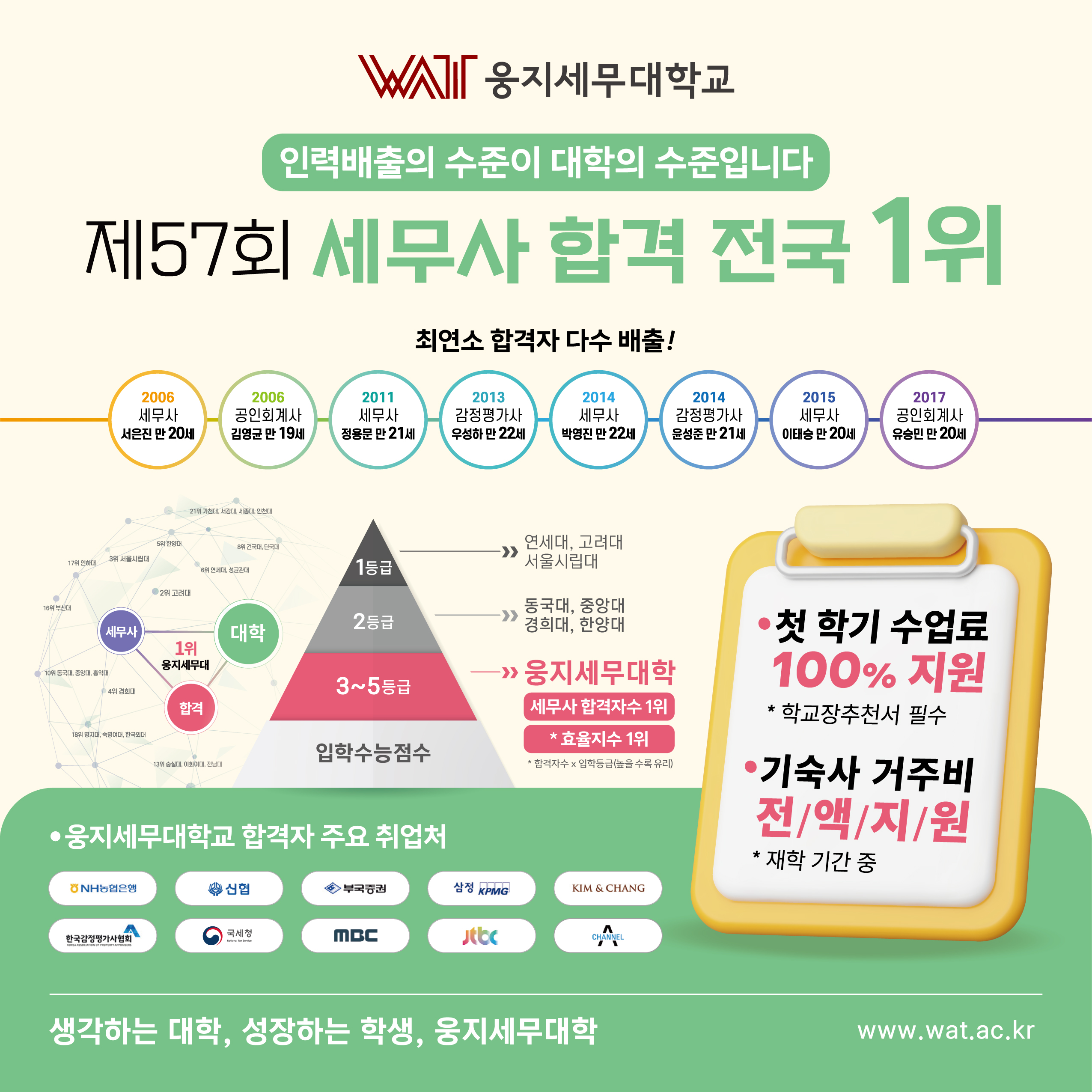 웅지세무대학교 글로벌경영학과(순수 외국인 전담 학과) 신입생 모집안내