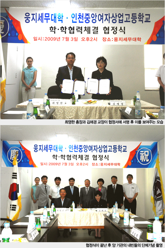 2009년 7월 3일 오후 2시 우리대학은 인천여자상업고등학교와 학·학 협력체결 협정식이 있었다. 지난 5월 20일 부평정보고등학교와 협약 이후 회계·세무 특성화 전문계 고등학교와는 두 번째 협력체결이다.