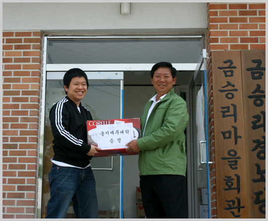 2009년 5월 8일(금) 어버이날을 맞이하여 우리대학 자매마을(축현1리, 금승리, 율포리)에 문안을 여쭙고 선물을 전달하였습니다.