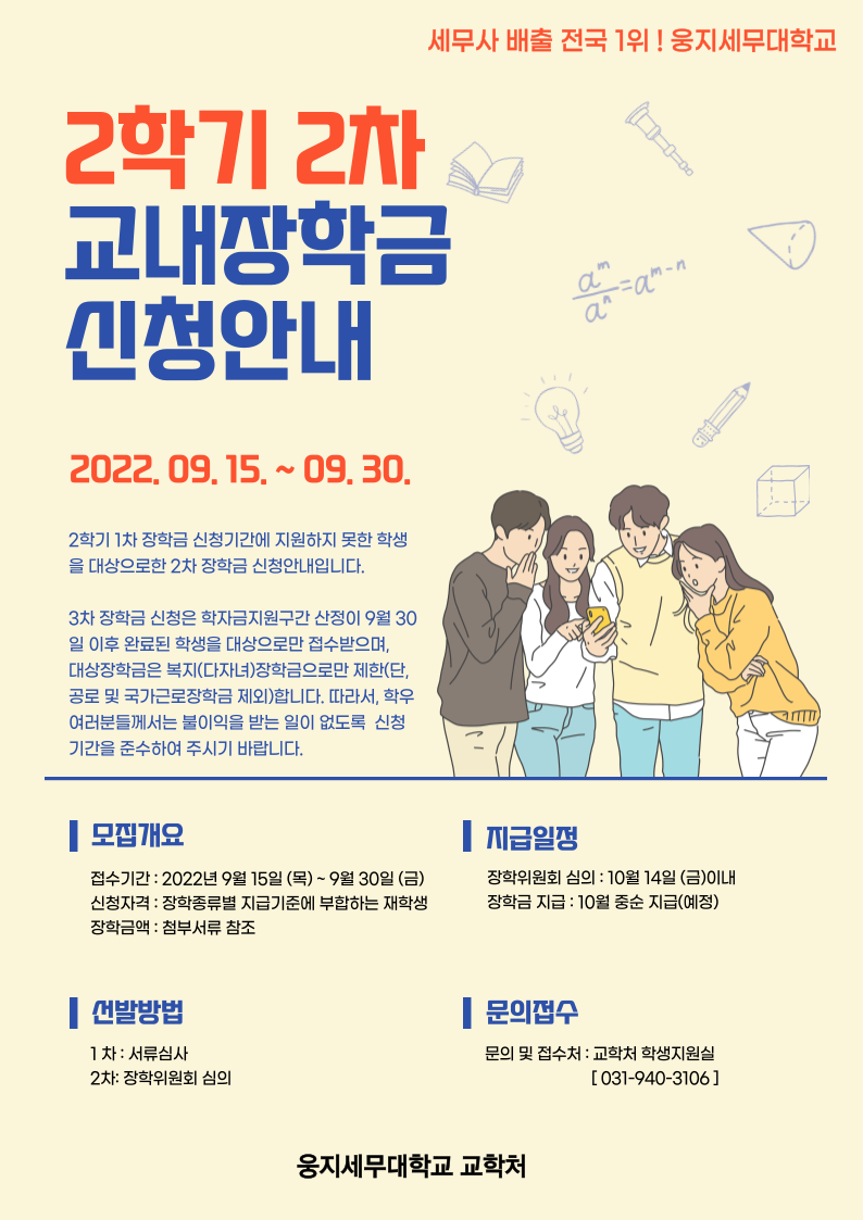 2022학년도 2학기 교내장학금 2차 신청 안내