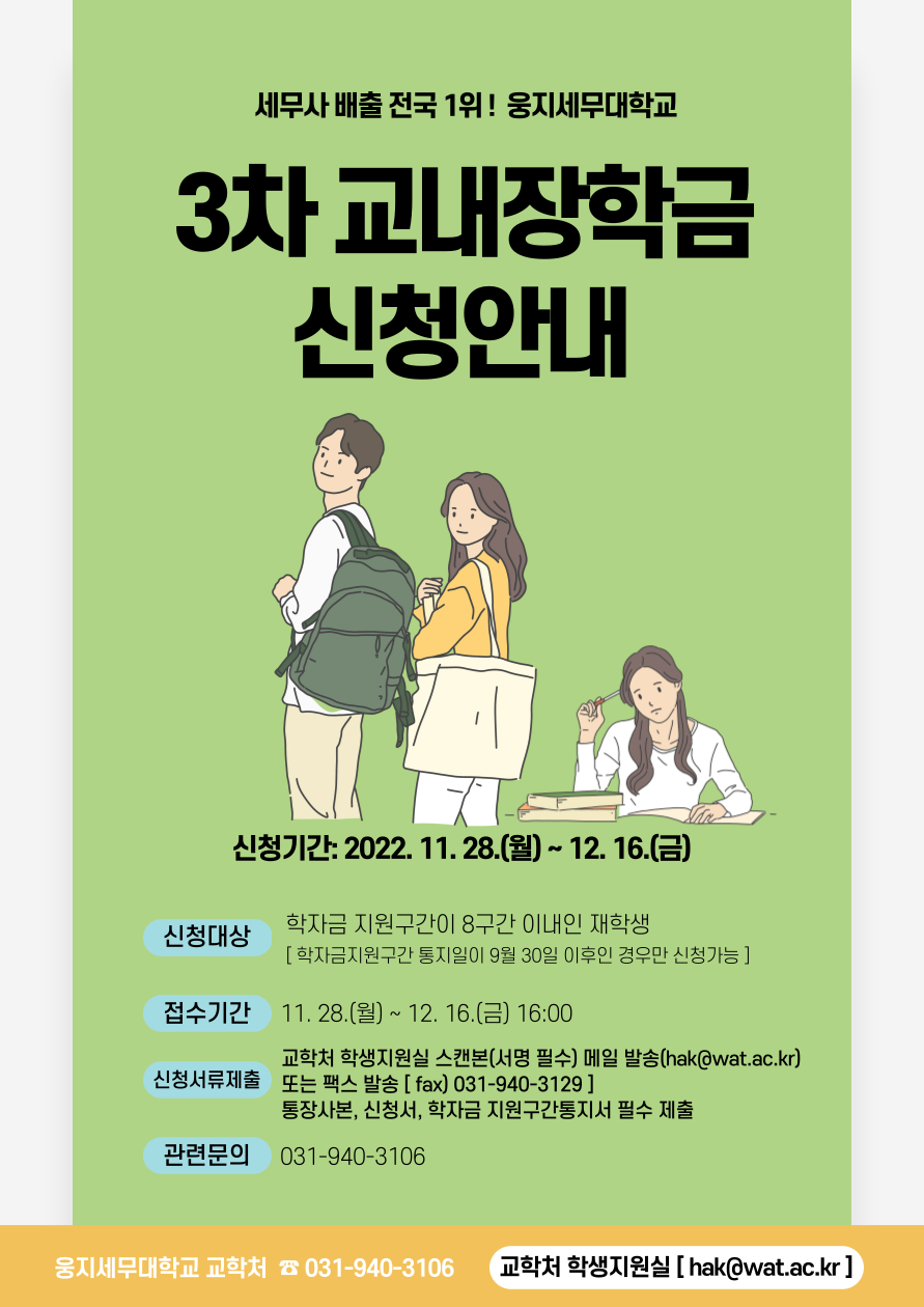 2022학년도 2학기 3차 교내장학금 신청 안내