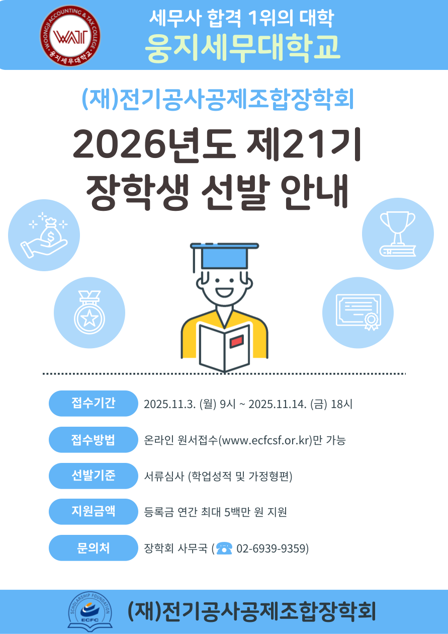 (재)전기공사공제조합장학회 2026년도 제21기 장학생 선발 안내