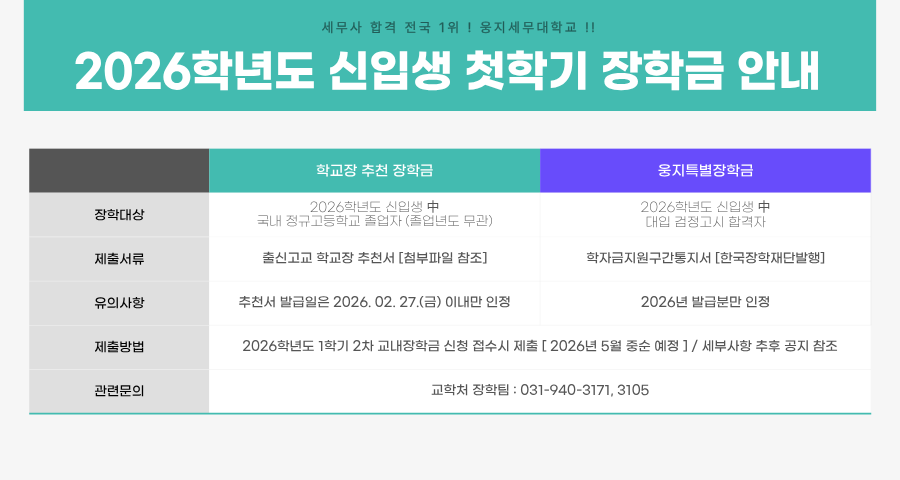 2026학년도 신입생 첫학기 장학금 안내
